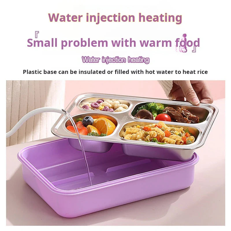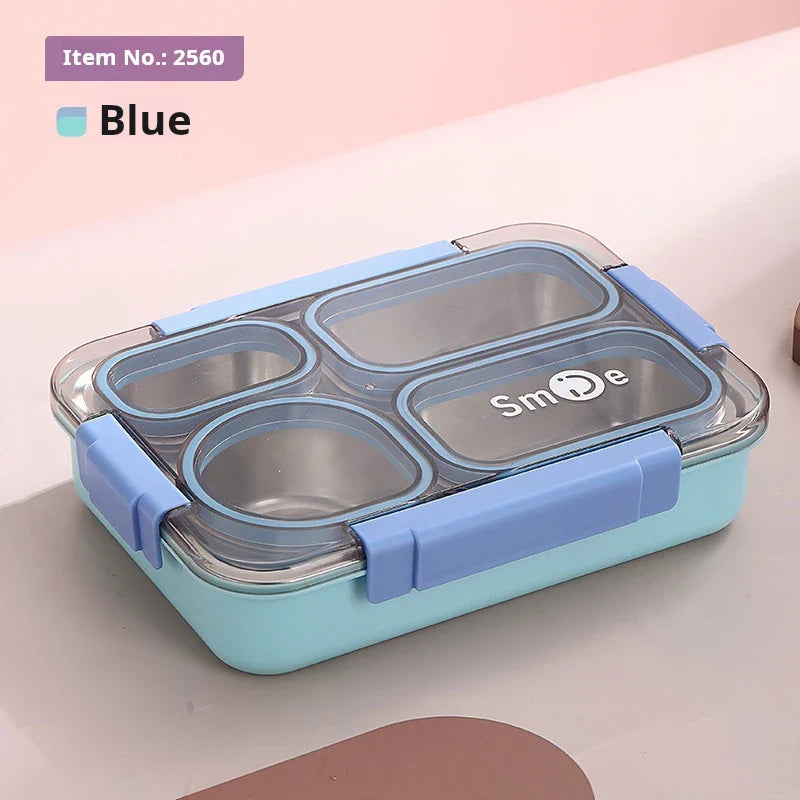 High quality Four grids Stainless steel sealed lunch box with bowl student office portable bento box with spoon chopsticks